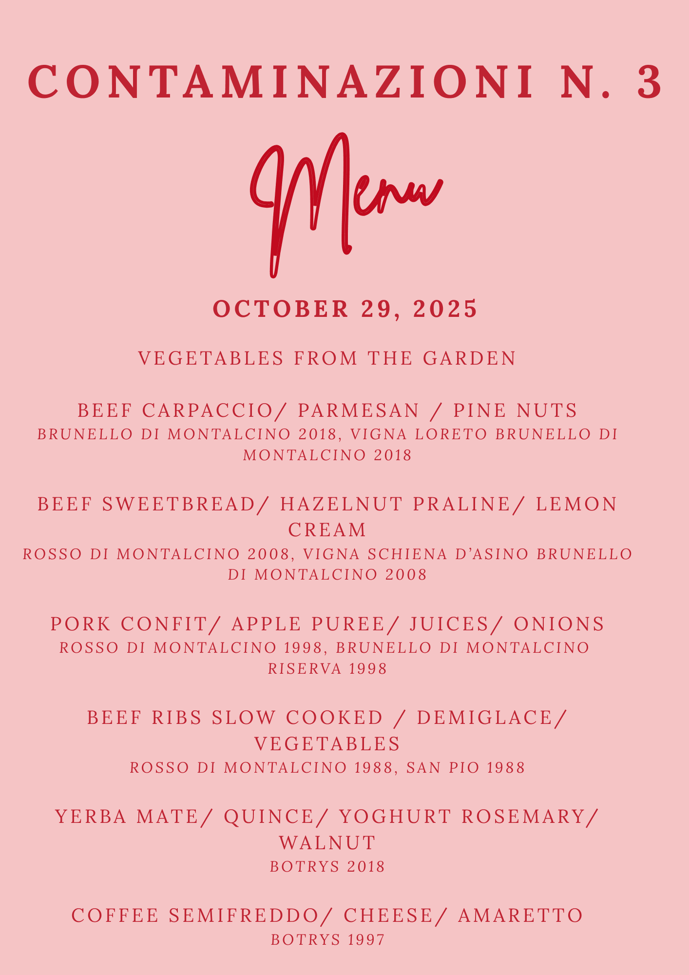 Today, the Damonte brothers take their style around the world through pop-up dinners and international collaborations, and we are thrilled to welcome them back to Mastrojanni. They will also be with us on October 26, 28, 30 (lunch only), and 31 with an à la carte menu.